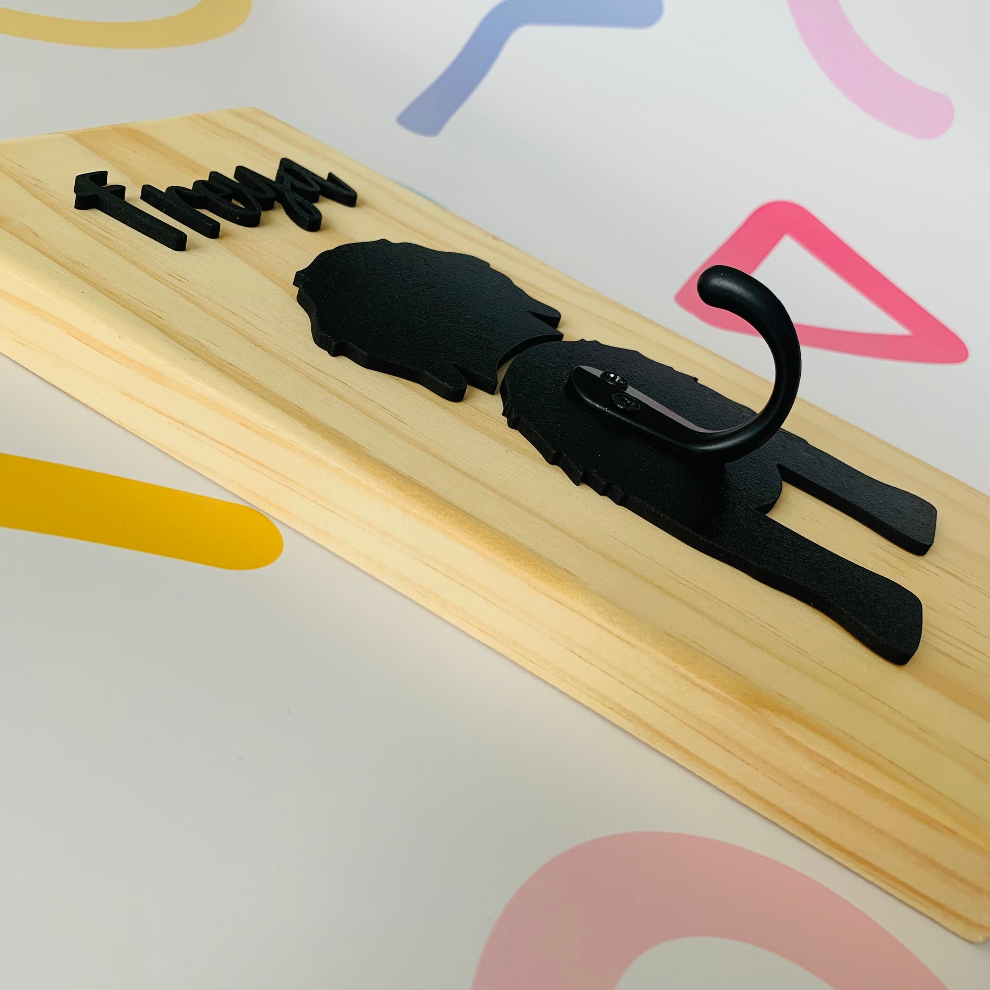 Never go searching for their lead again! This sign is perfect for holding your fur-baby's lead when they're not out on their adventures. Each sign features your chosen dog silhouette in gloss black MDF, with your four-legged friend's name above to match. Sign measures 25cm tall, 14cm wide and approximately 1.8cm deep. Fitted with a powder-coated metal hook on the front, and a single keyhole bracket on the reverse (screw and wall fittings not included).