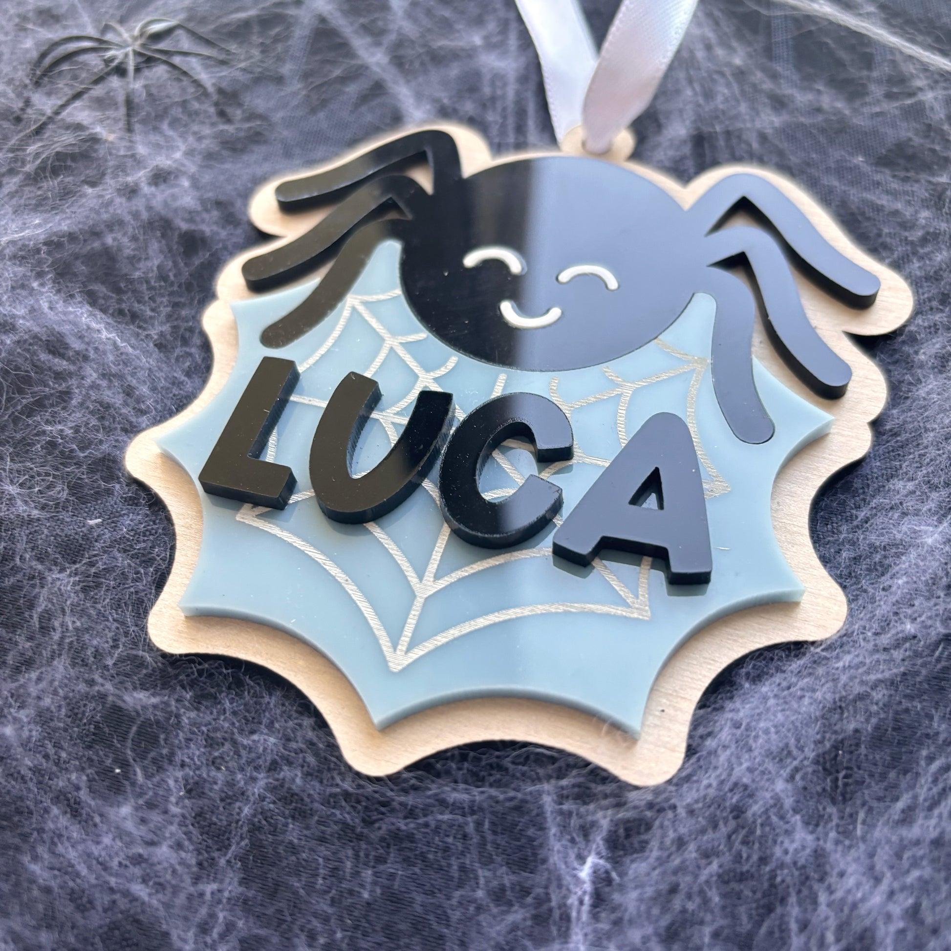 Ensure their halloween treats don't get mixed up with our basket name tags! Each Spider tag measures 9cm wide by 10cm tall and is finished with white ribbon ready to add to their basket. Featuring layered glossy acrylic on a plywood backing, these tags are made to be reused for years to come!Â